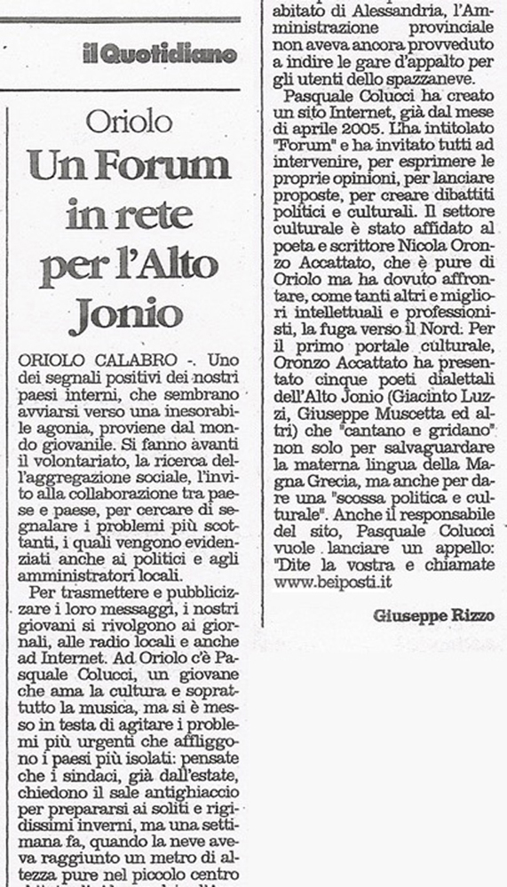 VISUALIZZA GLI ARTICOLI SUL WEB CLICCA QUI